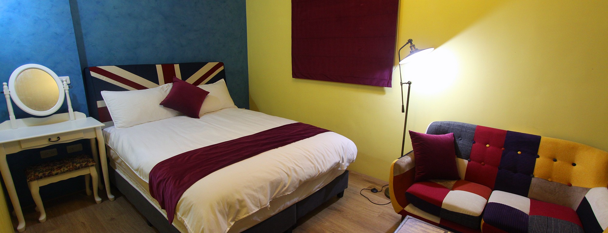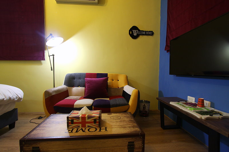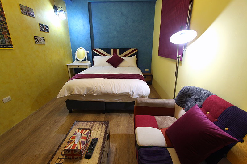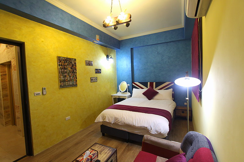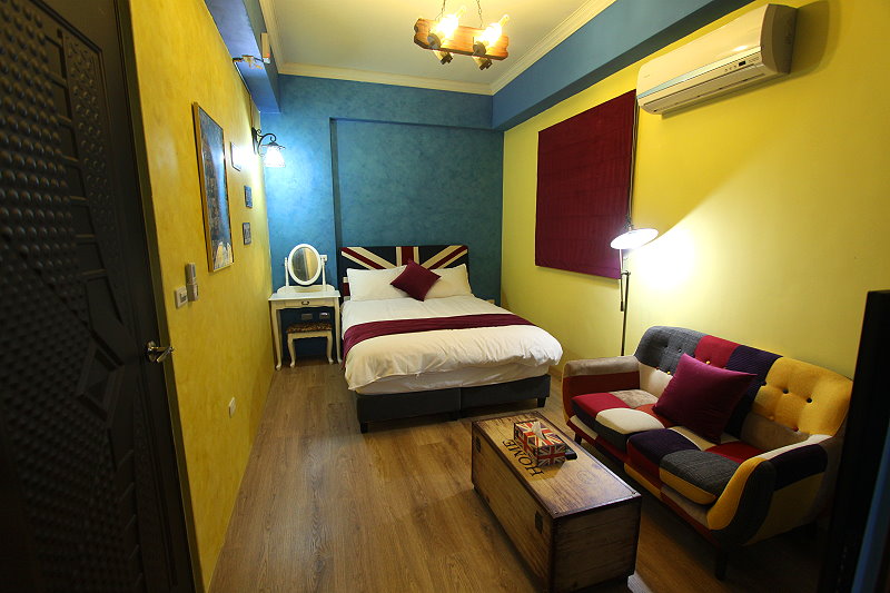 英國藍雙人房guestroom 房型價格 平日:NT$1500 假日:NT$1700(星期六及連續假期) 定價:NT$3000 加床價:平日NT$300/人、過年NT$500/人 住宿人數:2人 包棟價格 平日:NT$8000 假日:NT$9500(星期六及連續假期) 客房設備 液晶電視,中華電信MOD,wifi,日立分離冷暖氣,乾濕分離衛浴設備,冰箱,衣架,沙發,吹風機,礦泉水,茶包,咖啡包,浴巾,盥洗用品,小陽台,無線上網(需自備電腦) 公共設施 冰箱 免費停車場